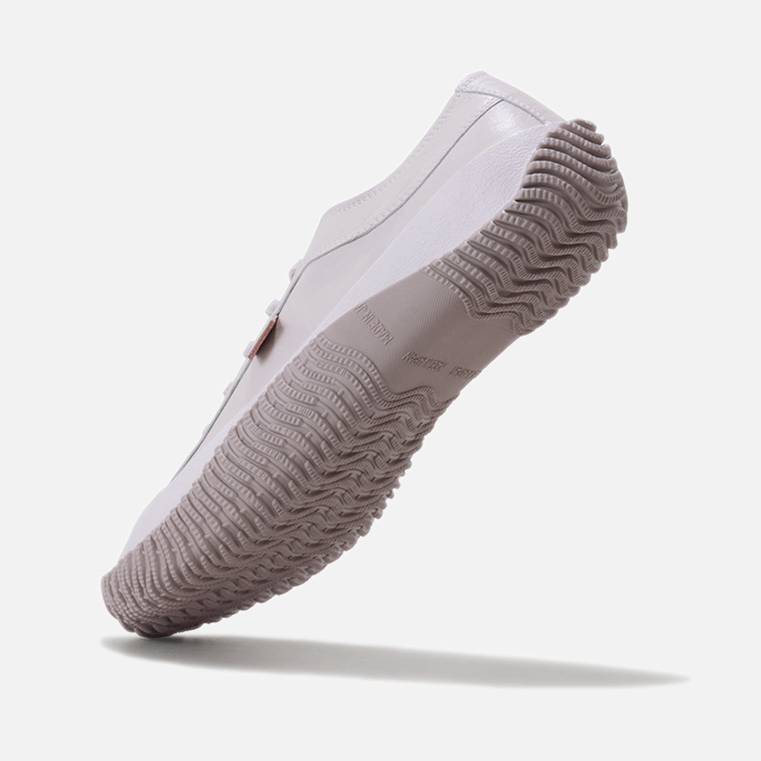 Additionally, the lining (inner) is made with as few machine perforations as possible to improve foot comfort, and the heel portion is made with a counter (interlining material) which holds the shoe firmly in place and makes it easy to walk in.